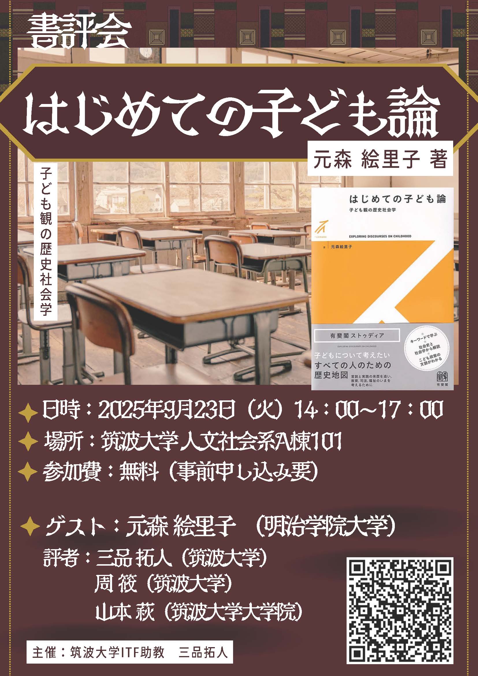 筑波大学で『はじめての子ども論』書評会が下記のように開催されます。